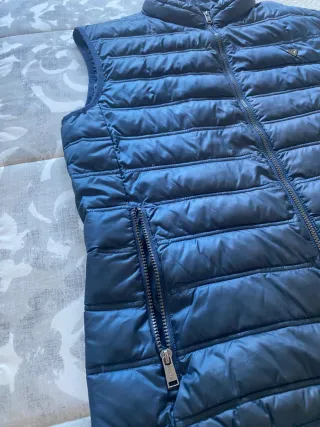 Chaleco acolchado de la marca Guess. - Cierre completo con cremallera. - Cuello alto. - Dos bolsillos laterales con cremallera.