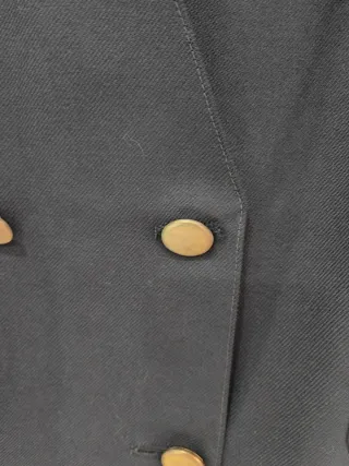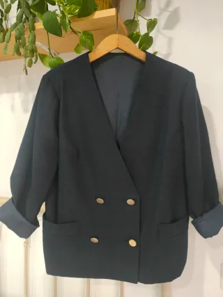 Elegante blazer americana en color azul marino, cosida a mano, forrada completamente - Diseño muy original cruzado con doble abotonadura sin solapas. - Dos bolsillos frontales. - Puños vueltos. Pregunta por mi perfil de Vinted, muchas más prendas!