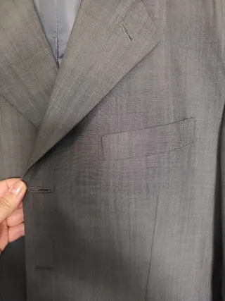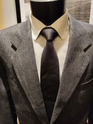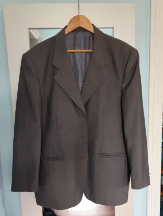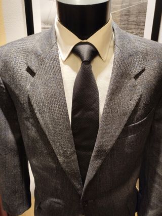 Vendo este traje hecho a medida en Confecciones Arlequín (Pontevedra). La chaqueta es una talla 58 y el pantalón una 50.