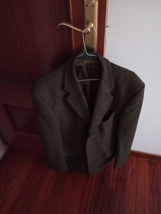 Americana de purificación garcía Color beige-verde muy claro con los cuadros marrones. Pone talla L, pero es como una S. Solo tiene los botones un poco desgastados, como se ve en la imagen.