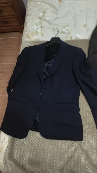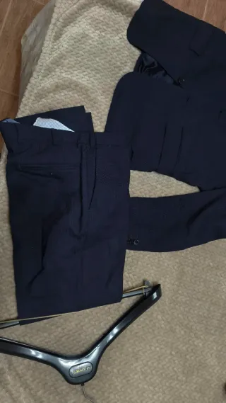 Elegante traje de corte clásico en color azul marino. Perfecto para ocasiones formales o eventos especiales, se uso solo una vez americana talla 46 y pantalón talla 38