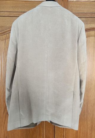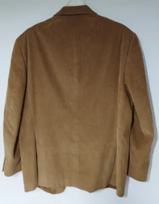 Americana de pana para hombre en color beige. Un clásico versátil para cualquier ocasión. - Cierre de dos botones. - Bolsillo de pecho. - Dos bolsillos inferiores de solapa. - Cuello de solapa. - Tiene un par de chinazos leves, se ven en las fotos del final, se aprecian muy poco en directo, solo si te fijas mucho.