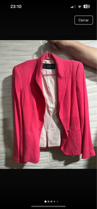 Americana blazer de Zara en color fucsia. - Talla XS. - Diseño elegante y moderno.