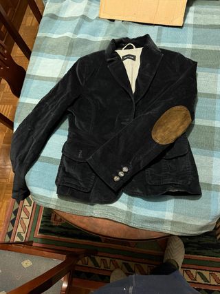 Americana de terciopelo azul con coderas de ante. XL pero da muy poca talla. Puesta en pocas ocasiones.