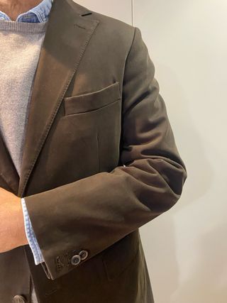 Americana verde oliva de Spagnolo, para entretiempo o para traje sport. Talla 52, corresponde a una L/XL. Únicamente se ha usado para un evento, está nueva.