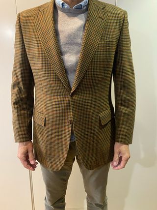 Americana con un diseño de cuadros clásico. De la sastrería Yusty de Madrid. - Cuello solapa. - Cierre de un botón. - Bolsillos frontales con solapa. -calidad excelente. 100% lana
