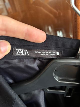 Traje Zara Slim Fit color azulón, compuesto por americana talla EU 46 y pantalón talla EU 40. Está nuevo, usado solo una vez. Medidas Pantalón (EU 40– Slim Fit): cintura 42,5 · cadera 50,5 · largo 103,5 · tiro delantero 27,0 · tiro trasero 33,5 Americana/Blazer (EU 46- Slim Fit): pecho 48,0 · largo 75,0 · manga 62,0 · espalda 45,0 · ancho de brazo 17,5 Composición Pantalón: 54% poliéster, 39% viscosa, 7% elastano Americana/Blazer (exterior): 54% poliéster Forro: cuerpo 100% poliéster; mangas 95% poliéster, 5% elastano
