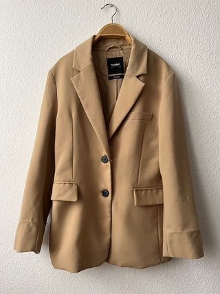 Americana estilo blazer en color beige. No es ajustada - Cierre de un botón. - Dos bolsillos frontales con solapa. - Cuello solapa clásico.