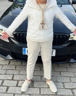 Traje de comunión para niño, talla 14. Un conjunto elegante y cómodo. - Color blanco y beige. - Talla 14 Diseñadora Paqui Barroso Sevilla Como nuevo