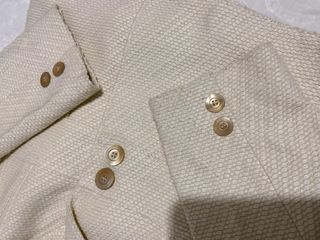 Elegante blazer o americana de Zara con tejido estructurado y textura de nido de abeja. Presenta solapas clásicas, forro interior satinado a tono y detalle de botones dobles en el frontal y en los puños. Es una prenda con un corte muy favorecedor, ideal tanto para looks de oficina como para eventos. • Marca: Zara (Zara Woman). • Talla: EUR 40 / USA 8 / MEX 30. • Color: Beige claro / Crema. • Estado: Buen estado general. Como se detalla en las imágenes, tiene un par de pequeñas manchas por el uso, pero la estructura y el tejido están muy bien conservados.