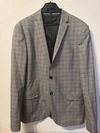 Americana de vestir de Primark, en perfecto estado ya que solo se ha usado una vez. Es una prenda elegante y versátil. - Diseño de espiga. - Cierre de dos botones. - Bolsillos de solapa.