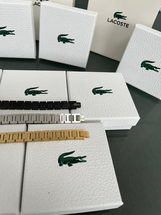 Pulsera de la marca Lacoste. - Diseño elegante y moderno. - Disponible en dorado, plateado y negro.