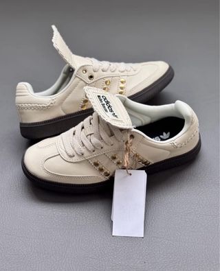 Zapatillas Adidas Wales Bonner en color blanco con detalles dorados. - Diseño con las tres rayas. - Cierre de cordones. - Detalle de tachuelas doradas.