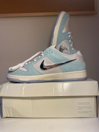 Zapatillas Nike Dunk Low con un diseño inspirado en abril. - Combinación de colores azul y blanco. - Detalles plateados en el Swoosh. -Envío en 24h📝