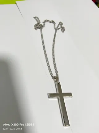 Elegante collar con un colgante en forma de cruz. Su diseño clásico lo hace un accesorio versátil. - Cadena de eslabones. - Colgante con acabado pulido....