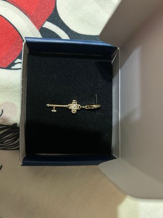 Este es un accesorio para collar con un diseño de llave en tono dorado. Presenta un detalle de circonitas en el centro, añadiendo un toque de brillo. - Diseño de llave. - Acabado dorado. - Adornado con circonitas.
