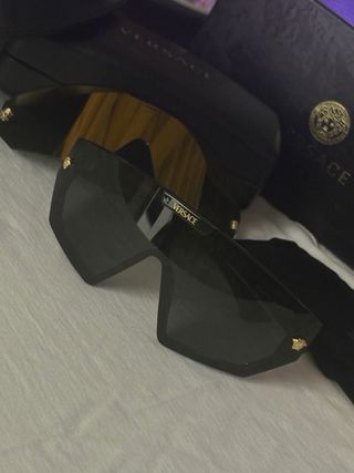Gafas de sol de la marca Versace con un diseño moderno y elegante. - Montura en color negro. - Detalles dorados. - Incluye estuche.