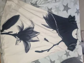 Elegante vestido midi con un bonito estampado floral. - Diseño midi. - Estampado floral en tonos beige y negro. - Detalle de encaje en mangas y cuello.
