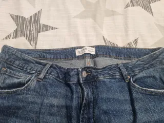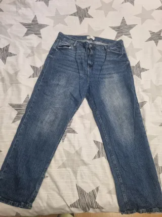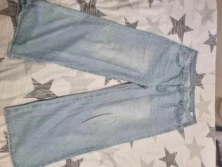Pantalón tejano de corte ancho. - Tejido vaquero. - Pierna ancha. - Le falta el botón