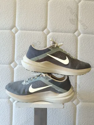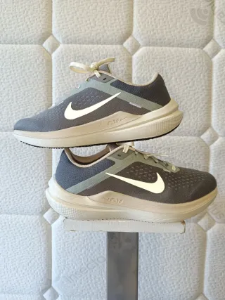 Zapatillas deportivas Nike Air Winflo 10. - Diseño moderno en tonos grises y detalles blancos. - Cierre con cordones. - Suela de goma para mayor tracción.