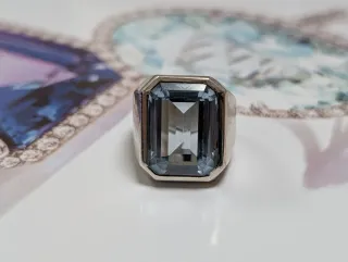Elegante anillo de plata con un llamativo topacio azul natural es antiguo, aunque no tiene el contraste de 925 es de plata de ley. La piedra central es de gran calidad y tamaño. Es un anillo unisex. Y se puede agrandar o achicar dependiendo de la medida del dedo de cada persona. Es bastante pesado! - Diseño clásico con gema octogonal. - Montura de plata robusta. #diamante #zafiro #esmeralda #rubi #moissanita #aguamarina #perla #oro #plata #platino #18k #925 #anillo #broche #colgante #pendientes #collar #gargantilla #gemelos #sortija #vintage #antiguo #antigua #joya #joyas #artdeco