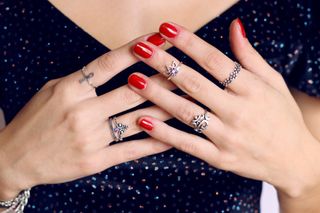 Conjunto de dos anillos antiguos. LO HAN DADO TODO. - Diseño con esmalte rojo y negro. - Anillo con forma de cabeza de león.
