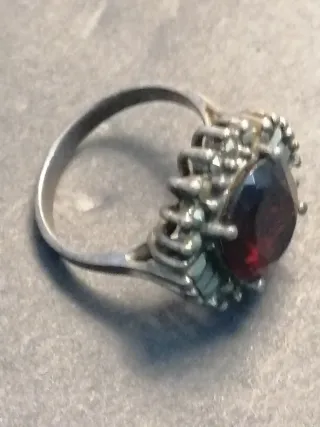 Anillo Antiguo Granate Plata