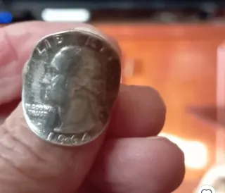 Anillo antiguo de plata con un diseño detallado con un cuarto de dólar de plata de 1964 - Diámetro: 17mm - Peso: 3.1g (precio negociable)