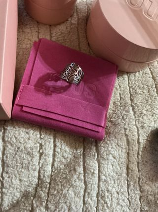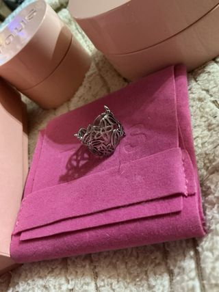 Anillo Tous con un diseño calado y delicado. - Diseño floral. - Acabado plateado. ( Modelo antiguo. )