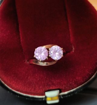 Antiguo anillo de oro con 2 piedras "rosa de Francia" de buen tamaño. Tiene un tamaño grande. Es preciosa.
