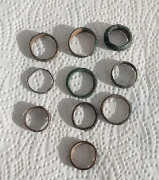 Conjunto de diez anillos antiguos con grabados. - Diseño único y detallado. - Piezas con historia y carácter.