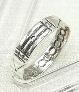 Anillo de plata , modelo Atlante. Presenta tres bandas grabadas en la parte frontal. y el grabado interior com sus agujerito en la parte contraria . - Diseño con tres bandas. - Material: Plata.
