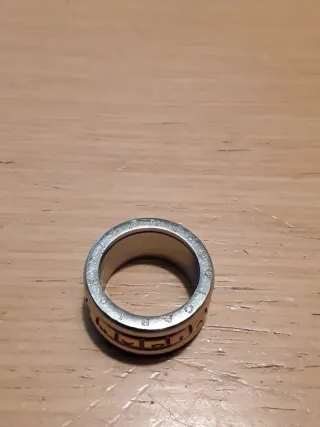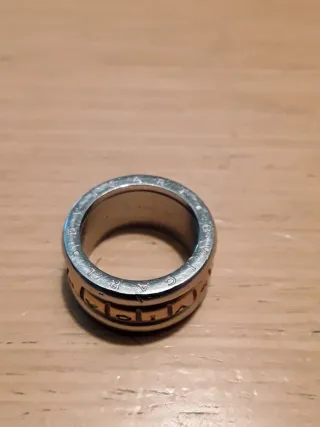 Elegante anillo de la marca Bulgari. Desconozco si es original. - Diseño bicolor en oro y plata. - Grabado distintivo de la marca.