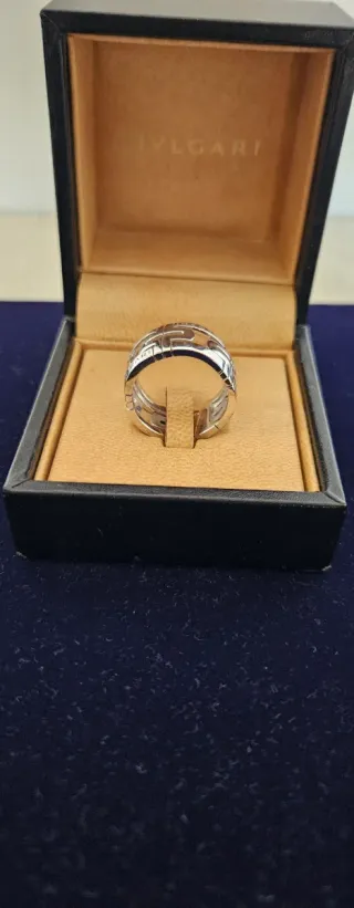 anillo de oro blanco, bulgari, autentico,, no consevo certificado,,, talla 54 recien pulido, ultima foto se ve nunero de serie, gente seria!!!!
