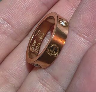 Anillo de la colección Love de Cartier, con tres diamantes. Diseño icónico de la marca. Oro rosa. Entrego factura de compra y certificado de autenticidad. Talla 48. Actualmente en boutique su precio es de 4500€. Solo lo vendo en persona, no hago envíos de este articulo.