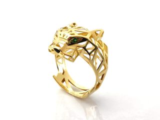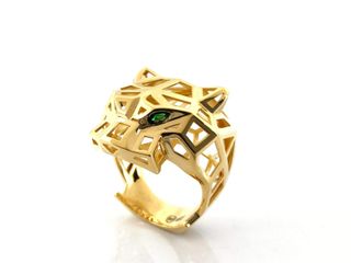 E1800682-27 Anillo Oro 18k Pantera Ojos Verdes