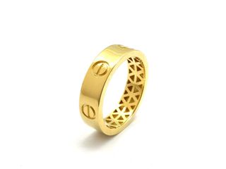 Elegante anillo con un diseño inspirado en Cartier, elaborado en oro laminado de 14 quilates. Antialergico - Acabado brillante. - Diseño de eslabones entrelazados.