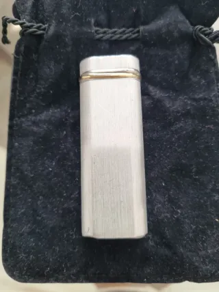 Elegante encendedor de la marca Cartier. Un accesorio clásico y sofisticado. Encendedor Cartier - Aluminio cepillado - Anillo Trinity.