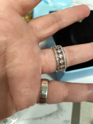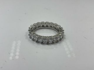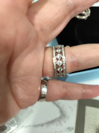Elegante anillo con un diseño clásico y brillante. Perfecto para añadir un toque de luz a cualquier ocasión. - Banda completa con circonitas. - Acabado plateado.nuevo con estuche