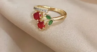 Elegante anillo con baño de oro de 14 quilates y detalles en morado. - Diseño con incrustaciones de piedras moradas. - Acabado brillante en tono dorado.
