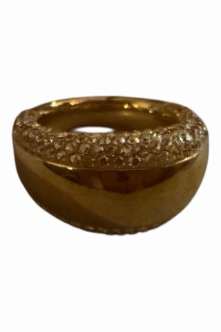 Elegante anillo dorado con una hilera de brillantes que aportan un brillo espectacular. - Diseño clásico y atemporal.