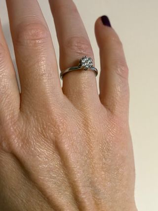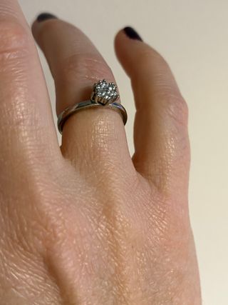 Elegante anillo de bisutería con un diseño delicado. Talla 7. Imitación moissanita - Detalles de circonitas brillantes. - Banda fina y cómoda.