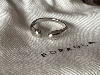 Anillo de plata de la marca Pdpaola. Descripción Talla 8 • material: plata de ley. • acabado: baño de rodio en plata • grosor total del anillo: 4 mm • peso: 2.10g - Diseño abierto y moderno. - Acabado pulido brillante.
