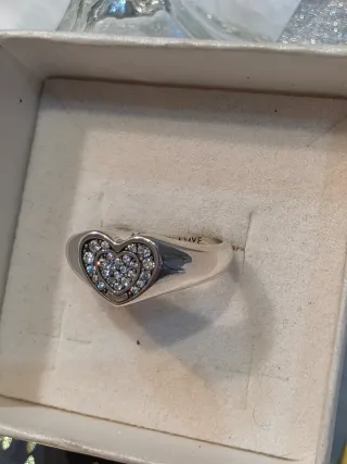 Anillo de plata ley con un diseño de corazón adornado con pequeñas gemas. - Diseño de corazón central. - Detalles brillantes.