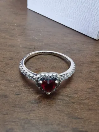 Anillo de Pandora con un diseño de corazón rojo y detalles plateados talla 54 ideal para regalar o darte un caprichito gracias - Diseño de corazón central. - Acompañado de pequeñas circonitas brillantes.