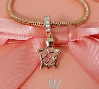 Precioso charm Tortuga 🐢de la Suerte 🍀con baño de oro rosa de 14 kt y. brillantes circonitas en la anilla. Cuerpo central ovalado en piedra Murano translúcida. Envío en su caja🎁.