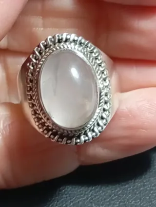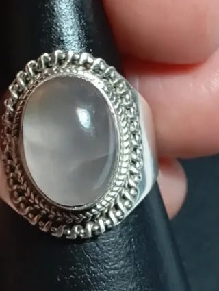Elegante anillo de plata de ley con una piedra ovalada en el centro. - Diseño con detalles trenzados alrededor de la piedra. - Acabado brillante en la plata.