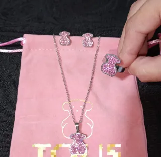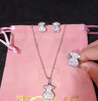 Conjunto de acero con un adorable diseño de oso. - Incluye collar, pendientes y anillo. - Detalles brillantes en todo el diseño. -Disponible plateado con brillantes de colores y plateado con brillantes rositas. -Fabricado en acero inoxidable. Ideal para regalo en esta Navidad 🎄🎁