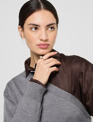 Elegante anillo de la marca Guess. - Diseño con detalles dorados y plateados. - Acabado brillante.