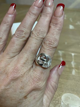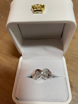 Elegante anillo con un diseño entrelazado que evoca un símbolo de infinito o amor eterno. Los detalles brillantes añaden un toque de sofisticación. - Diseño entrelazado. - Detalles brillantes.